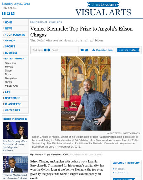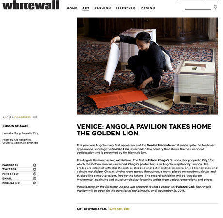 Es war der erste Pavillon aus Angola auf der Kunstbiennale überhaupt. Der Beitrag von Paula Nascimento, Stefano Rabolli Pansera mit der Serie „Found Not Taken“ des Fotografen Edson Chagas wurde von der Biennale-Jury mit dem Goldenen Löwen geehrt.