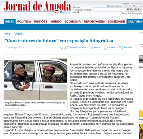 Um dos fotógrafos participantes na iniciativa é o angolano Edson Chagas, de 35 anos, natural de Luanda, formado em Fotojornalismo e que frequentou o curso de Fotografia Documental. Edson Chagas participou no projecto “Construtores do Futuro”, contribuindo com a sua visão e a sua experiência. O resultado deste encontro multicultural é uma exposição fotográfica que aborda as múltiplas facetas do tema, conduzindo os visitantes do nível abstracto para o concreto.